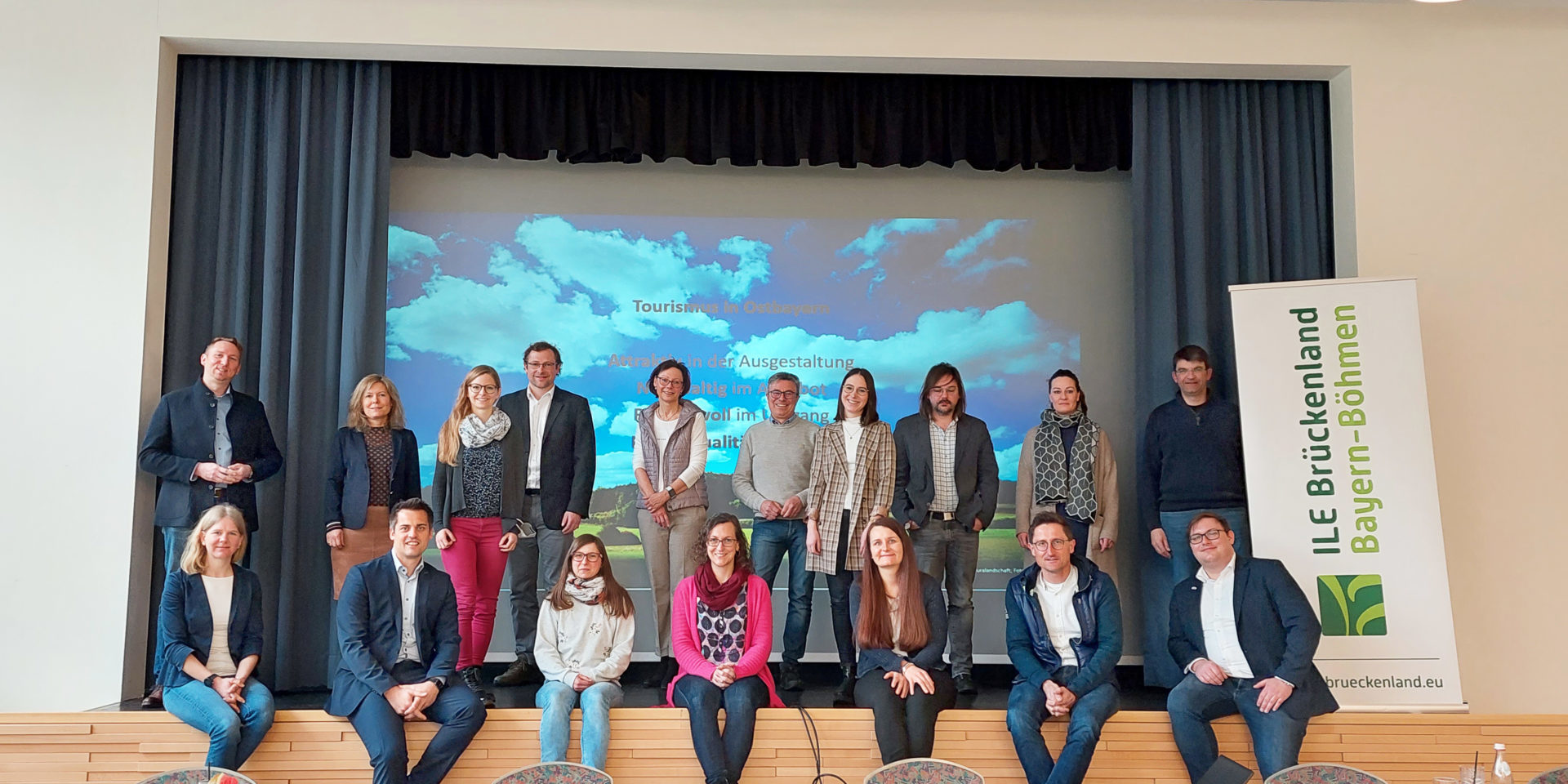 Hauptthema des Austausches in Oberviechtach war jedoch die „Touristische Entwicklung“ und die entsprechenden bayerischen und oberpfälzer Organisationsstrukturen. Hierzu hatten Michael Neft und Daniela Wehner vom ALE Oberpfalz mit Veronika Perschl vom Tourismusverband Ostbayern eine ausgewiesene Expertin gewinnen können. Sie zeigte mit ihrer Präsentation die institutionelle Struktur sowie die Akteure des Tourismus in Ostbayern auf und ging auf die Entwicklungen der letzten Jahre sowie die damit verbundenen Herausforderungen und Potentiale der oberpfälzer Tourismusdestinationen ein. Aufmerksam folgten die Teilnehmer den Ausführungen u.a. zum Ausbau von hochwertigen touristischen Angeboten in den Schwerpunktbereichen Wandern und Radfahren, der Zukunftsaufgabe „Nachhaltiger Tourismus“ und einer zunehmenden Digitalisierung der Tourismuswirtschaft. Da alle Beteiligten oft selbst mit touristischen Entwicklungszielen in der eigenen ILE-Region in Berührung kommen, ergab sich schnell eine rege Diskussions- und Fragerunde. Die Rolle der ILE-Zusammenschlüsse im touristischen Akteursnetzwerk wurde ebenso diskutiert und kritisch hinterfragt, wie auch bereits bestehende touristische Vertriebswege oder gemeinsame ILE-übergreifende, z.T. auch neuaufkommende, Strukturen und Projekte. So zum Beispiel das Grüne Band entlang der bayerisch-tschechischen Grenze, die Fernwanderwege Gold- und Jurasteig oder die geplanten sogenannten Eric-Frenzel-Trails in der nördlichen Oberpfalz und deren Vermarktung in Konkurrenz zu anderen touristischen Regionen. Die Diskussion war ein wertvoller Austausch, der auf dieser Ebene bislang noch nicht stattgefunden hatte. Hier sei ein wichtiger Anknüpfungspunkt für zukünftige Kontakte entstanden, waren sich alle Beteiligten sicher.