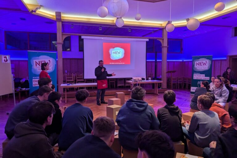 Beim „NEW Real Talk“ haben Jugendliche zwischen 12 und 18 Jahren die Möglichkeit, sich aktiv in die kommunale Jugendarbeit ihrer Stadt oder Gemeinde einzubringen. In Gruppenworkshops werden Wünsche und Vorschläge der Jugendlichen sowie deren Sorgen und Nöte gesammelt. Vertreterinnen und Vertreter des Gemeinderats nehmen unmittelbar Stellung zu den Meinungen und Themen der Jugendlichen.